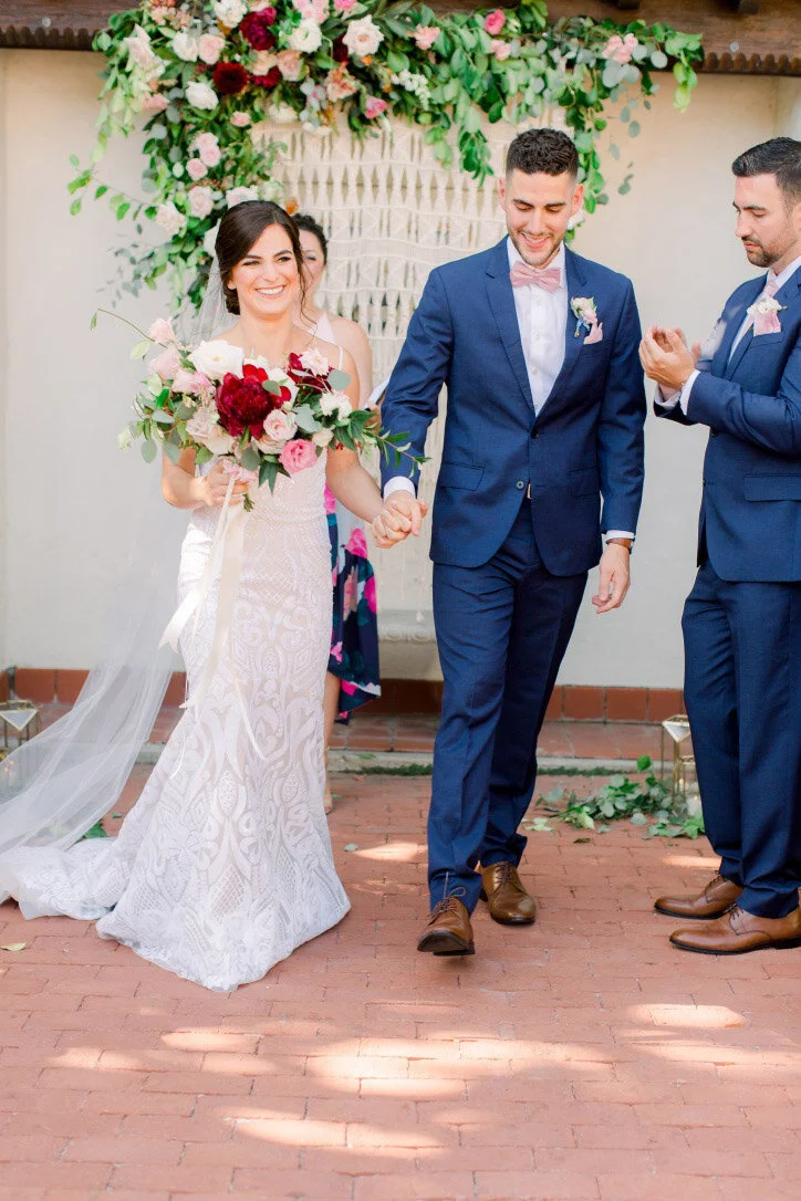 From deep red peonies to Spanish tile table numbers, I’m thrilled to share with you L+A’s romantic affair. With a bridal bouquet for the books and a lounge that has me weak in the knees, this one takes feminine weddings to a level I’m absolutely loving. I can’t get enough of the groom’s pink bow tie and the macrame ceremony backdrop—and don’t even get me started on the centerpieces. Romantic in red, blue, and pink—everything came together to create an aesthetic that we’ll obsess over forever.